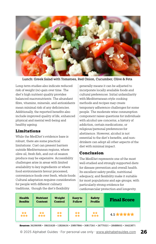The Diet Atlas is your evidence-based map through the world of modern nutrition. It compares 26 popular and scientifically supported diets — from Mediterranean and Fasting to Keto and Plant-Based — giving you the clarity to decide which best fits your lifestyle, preferences, and goals.